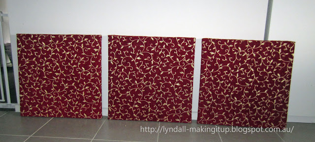 I wanted some pictures to go above our bed head in our new house. I had a look at a few, but the price really put me off. So I decided to buy some canvases and material at my local craft store and make my own .